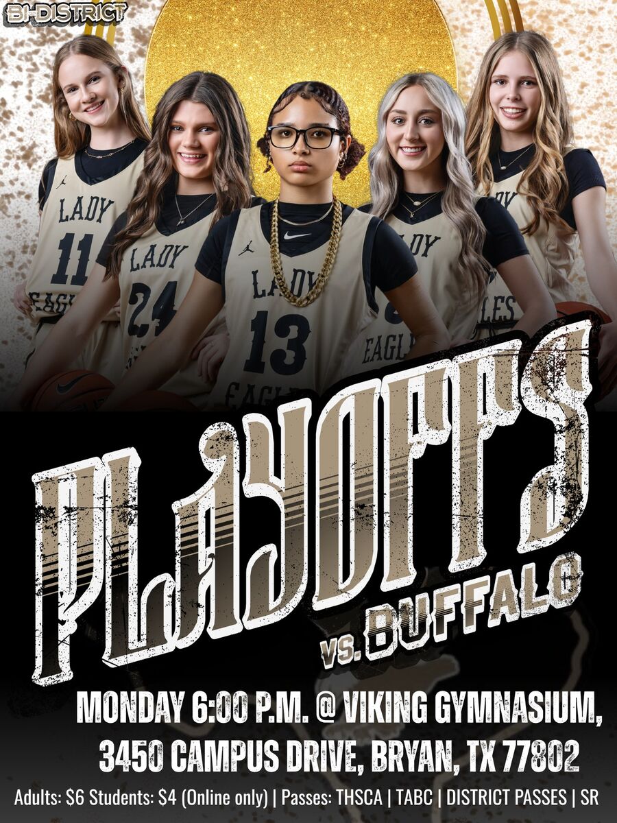 Our Lady Eagles are taking on Buffalo HS in the Bi-District playoff round TONIGHT at 6:00PM in Bryan.Online Tickets only. Tickets can be purchased here. Let's pack the stands, be loud, and show our...